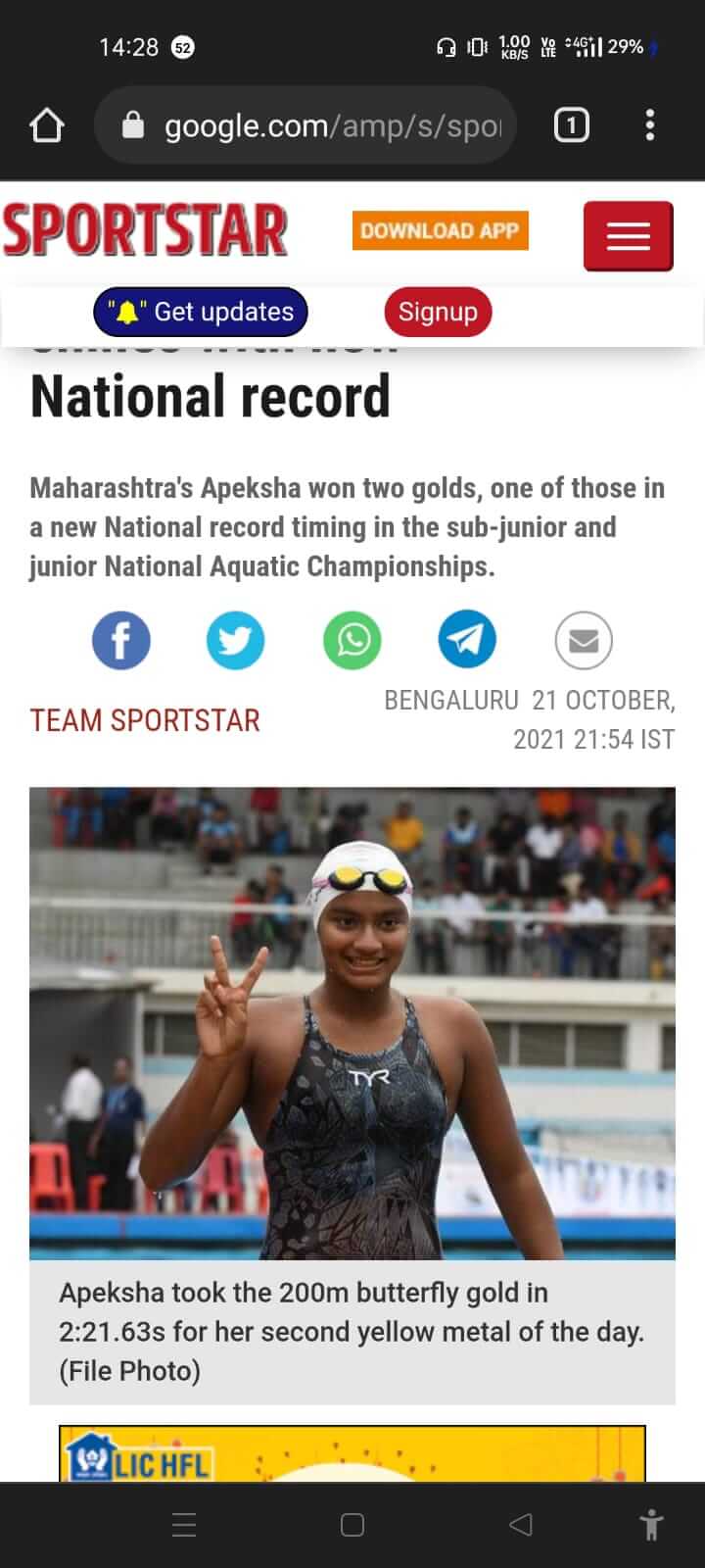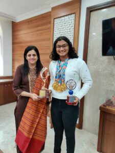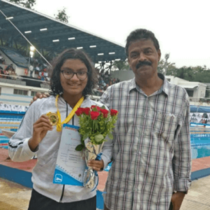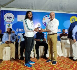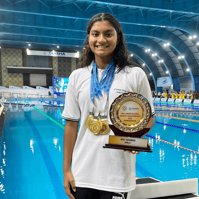 Apeksha at 48th Junior National Aquatic Championship, held at Bhubaneshwar, in 2022 after clinching the Best swimmer award