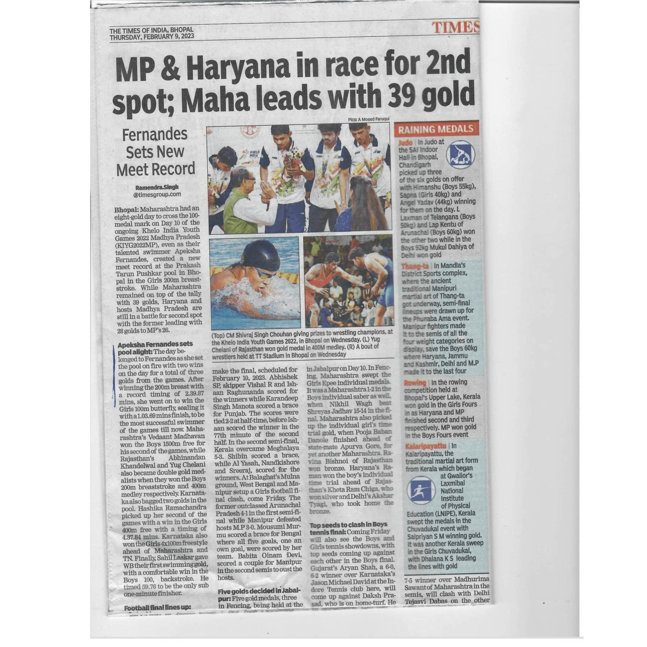 - Won 18 Gold and 6 Silver medals in Khelo India Youth Games 2019, 2020, 2021 and 2022. Highest Medal winner among all the participants across all the sports events in Khelo India Games 2022.