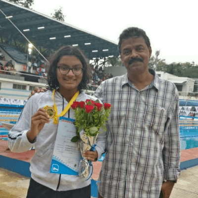 Apeksha Fernandes, an international swimmer, has set multiple national records and received several awards for her performance. Some of her accomplishments include winning the Best Swimmer Trophy at the Junior National Aquatic Championships for three consecutive years (2019, 2021, and 22). She won the Best swimmer (Women) at the senior National Aquatic Championship in 2022. She has also received a Certificate of Appreciation from IIT Bombay for her performance at various national and international swimming competitions.