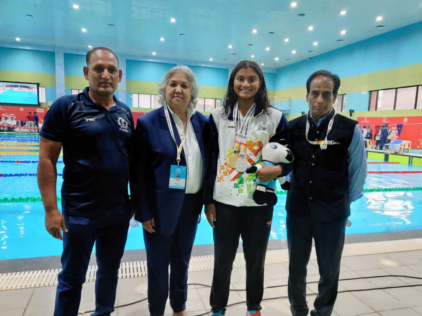 Apeksha at 48th Junior National Aquatic Championship, held at Bhubaneshwar, in 2022 after clinching the Best swimmer award